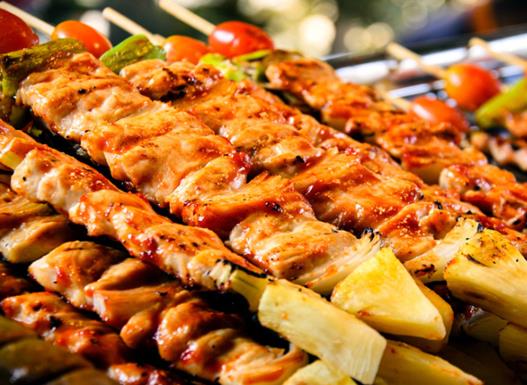 烤肉的主角就是牛肉,還有烤蔬菜,烤蛤蜊,烤地瓜,烤洋蔥,烤魷魚。 燒烤的調料有孜然,芝麻,紅辣椒,花生面,黑胡椒,味精和鹽。不同的蘸料可以自己選擇。