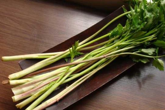 水芹菜富含多種維生素和無機鹽類,還有很高的膳食纖維,具有凈化血液,降低血壓和血脂、抗癌防癌等功效。水芹菜含鐵量高,能補充婦女經血的損失,是缺鐵性貧血患者的佳蔬,食之能避免皮膚蒼白、干燥、面色無華,可使目光有神,頭發黑亮。水芹菜中的鋅元素,能促進人的性興奮,被稱為“夫妻菜”。水芹菜的葉、莖含有揮發性物質,吃在嘴里,有一種特異的芳香,能增強人的食欲。