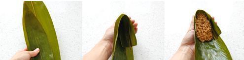 1、先把粽葉卷成漏斗形狀