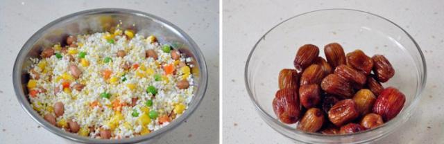A:糯米750克,大黃米100克,花生仁120克,雜蔬200克。