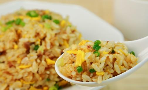 白飯如果是熱呼呼的,容易形成黏性,最好將熟飯先攤開,讓蒸氣散發后再炒,從冰箱拿出來的飯也不宜直接炒,先行微波解凍,然后攤開散溫再炒,就不會黏糊了。
